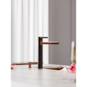 Bateria kuchenna marki ALVEUS model ZINA kolor miedź wyposażone w dyski wykonane z ceramiki, które zapewniają wygodna obsługę, gdyż dyski przemieszczają się względem siebie .Baterie można zamontować na zlewie lun blacie kuchennym. Płynna regulacja temperatury .