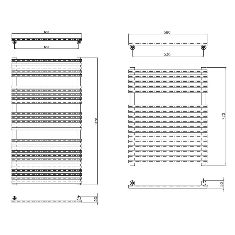Grzejnik łazienkowy marki LUXRAD o modelu PIKO 1238 mm x 580 mm to ekskluzywny grzejnik wykonany ze stali niskowęglowej lakierowanej proszkowo. Nietuzinkowy  grzejnik  zaprojektowany w dobrym  stylu i dużej mocy grzejnej . Odważnych i nowoczesnych, dla tych którzy nie chcą iść na kompromis w kwestii wyglądu i funkcjonalności. Zaspokoi oczekiwania wszystkich ludzi ceniących  sobie ponadczasowy design.  Posiada kolektory pionowe  okrągłe Ø 30,  rury poziome okrągłe Ø 20  .